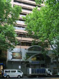 There were no laneways as I know them. Just allotments facing Collins Street but also running right the way through to Flinders Lane. Next time I walked out the back door of the GSV I crossed Flinders Lane and turned around. The rear view of 257 Collins Street is quite different to the front view. Firstly, there is access to the carpark, not directly from Flinders Lane but from a laneway off Flinders Lane.